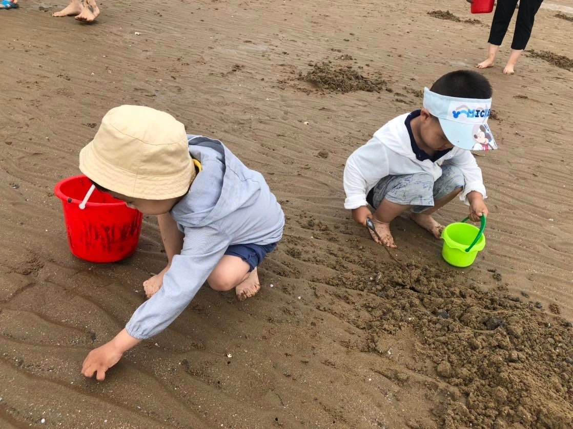午饭过后,便是小朋友们的‘战场’了,大家前往会场沙滩【赶海】挖蛤蜊,小螃蟹等,既让小朋友们体验了自己动手挖蛤蜊的乐趣,又让大人们回忆起自己的童年趣事。看着满载而归的小朋友们,笑容也瞬间定格在了大人们的脸上。
