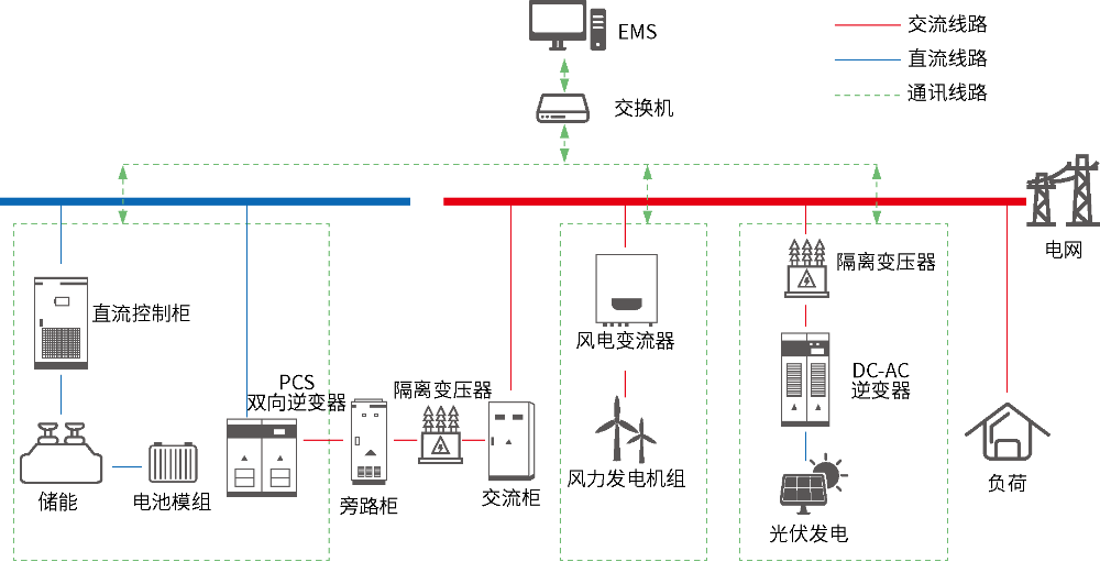 各个支路有单独的控制系统,通过EMS总体协调控制。