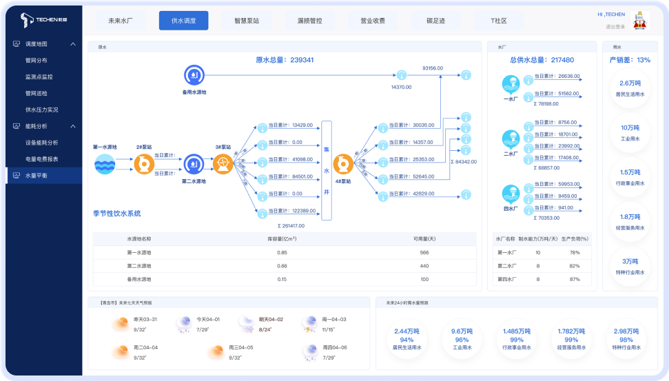 智慧泵站:分布地图、泵站监控、能耗分析等。
